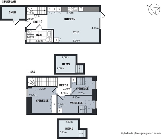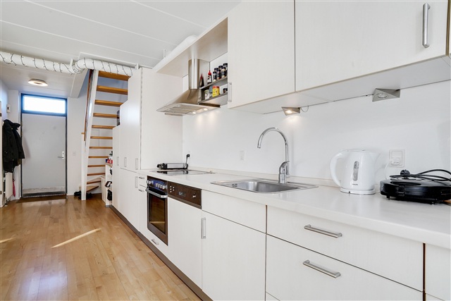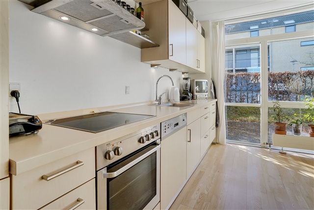 A spacious four-bedroom, two-story apartment with a private terrace and garden. The ground floor features an open-plan kitchen and living area with all essential appliances, including a fridge-freezer, oven, stovetop, and dishwasher. The bathroom has underfloor heating and a washer-dryer column. On the first floor, there are three well-sized bedrooms with built-in closets, two of which have loft spaces. There is also access to the private terrace and garden from the kitchen-living space. Additionally, the apartment has its own storage shed by the entrance. Dogs or cats are allowed by agreement.