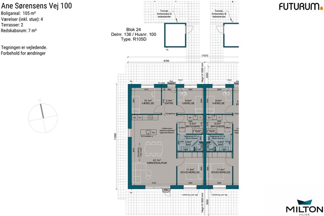 Modern and bright townhouse with plenty of natural light from large windows. You enter into a separate entrance hall with access to two good rooms. From the entrance hall you will find the large living room with a bright kitchen and plenty of space for a dining table. There is also the possibility to arrange a cozy sofa corner. From the family room you will find a separate utility room with a sink and space for a washing machine and dryer, from here you will find a large modern bathroom. Furthermore, there is a bedroom with a built-in closet wall. From the living room there is access to a terrace the entire width of the house and a lovely garden.Garden: Private garden and terraceOutbuildings: Storage room 7m²Parking: 2 parking spaces by the houseAll consumption is paid directly to the utility companiesOpen and bright semi-detached housesAll semi-detached houses are bright and friendly with white, smooth ceilings and walls. Lovely windows for extra light throughout. Oak plank floors (laminate) in the kitchen/living room, living room and bedrooms. Entrance hall, utility room, bathroom and shower are finished with beautiful tiled floors in dark gray. All doors in smooth, white finish with stainless steel handles and without doorsteps for optimal access. Window frames are bricked and water-scoured in white. Walls facing the floor are finished with smooth white skirting boards.Fine details everywhereKitchen, bathroom, utility room and bedroom are fitted with modern HTH modules in smooth white finish with anthracite line handles. Practical laminate worktops in 'rustic slate' color with spacious steel sinks. Splash plate behind the hob for easy cleaning. Bathroom sink in molded material. Wall-hung toilet from Ifö Sign, quality fittings from German Hans Grohe and line drain in the shower.Quality white goodsAll appliances are included and of recognized quality. The oven is built into a tall cabinet.A washing machine and condenser dryer are also included.Fixed and good lightingThere is a light source in the bathroom and utility room as well as ventilation in the ceiling. The kitchen has spotlights in the wall cabinets.Prepared for electric carsEmpty pipes have been prepared for an electric vehicle charging station.Healthy indoor climate and underfloor heatingThere is underfloor heating throughout the semi-detached house. This is controlled via separate thermostats in all rooms. The home is equipped with ventilation systems that ensure a healthy indoor climate.Individual consumption metersConsumption for electricity, heating, water and wastewater is settled directly between the tenant and the utility companies. Heating is via district heating.Outside, there is an electrical outlet and faucet as well as a wall lamp by the entrance door.Reservations are made for corrections.