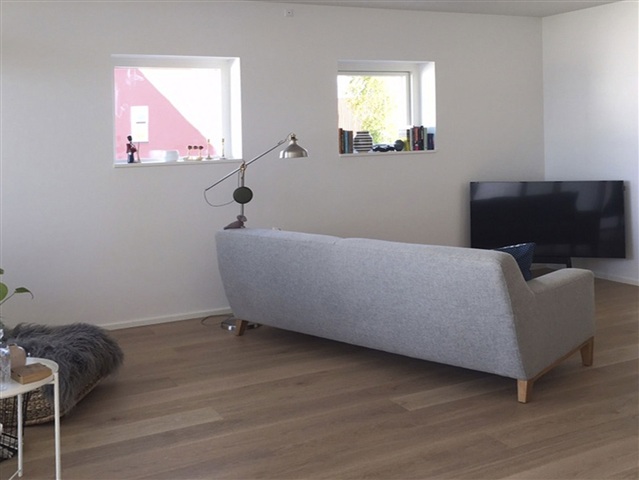 Apartment on the 1st floor with direct views of Køge Bay.The apartment is extremely modern and well-furnished with a kitchen-dining room and living room in one, where you have a larger open-plan kitchen, dining area and plenty of space to furnish a cozy sofa corner. In addition, there is a bathroom, hallway, bedroom with a smaller walk-in closet and access to a smaller balcony and a room. Life can really be enjoyed on the large balcony with a direct view of the water, and with ample opportunity for furnishing with garden/lounge furniture, barbecue, etc.Garden: Private terraceOutbuildings: Tool roomParking: Shared parkingHeating is charged on account, all other consumption is paid directly to the utility companiesSpacious apartments without wasted spaceAs described, the apartments are all on one level and are located on either the ground floor or the 1st floor.When you enter the apartments on The area, you are welcomed by a bright entrance hall.From the entrance hall there is access to the room, bedroom and the large bathroom. From here you also have access to the large kitchen/family room and living room, which flow into one. The kitchen/family room and living room invite togetherness, everyday life and space for many guests.The apartments are given extra depth with large window sections to a large and beautiful private terrace/balcony finished with either vegetation or glass screens.On the 1st floor you have the pleasure of having access to two balconies. One on each side of the apartment. The large window sections let in the light and enhance the experience of the space.The apartments are generally spacious, and there is no wasted space here.Delicious choice of materialsThe floors in all living rooms and bedrooms are oak planks in natural color. In the bathroom there are large tiles in dark color, which emphasizes the contemporary style.The apartments have white walls and white plaster ceilings, large, white windows and glass sections with good light everywhere, as well as window sills in light plate.All interior doors are finished in smooth white with handles and without thresholds for optimal access. Walls facing the floor are finished with white, smooth skirting boards.The kitchen and bathroom are fitted with modern Invita modules in a smooth, dark finish and handle-free solution. White laminate worktops with a spacious sink. Splashback behind the hob for easy cleaning.All white goods are included in recognised quality. There is preparation for a washing machine and dryer in the bathroom, which the tenant will bring themselves.Healthy indoor climate and low energy consumptionThe heating in the apartments is controlled wirelessly with underfloor heating in all rooms. There is also a soundproof heat recovery system for a healthy indoor climate.The apartments have low energy consumption.The landlord charges for heating consumption. Electricity and water consumption is settled directly between the tenant and the utility companies. Heating via a shared natural gas system located in the building.Illustrations are model photos. Subject to corrections.