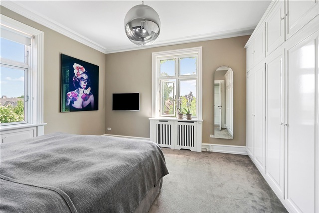 This beautifully renovated apartment demonstrates meticulous attention to materials and craftsmanship, embodying the spirit of Bedre Byggeskik as if created in 2025. The kitchen and bathrooms are modern and elegant, complemented by tall paneling and an abundance of natural light throughout. The rooftop terrace stands out as a private sanctuary, providing daily encounters with the sky’s birds and stars, exclusive to this residence.
