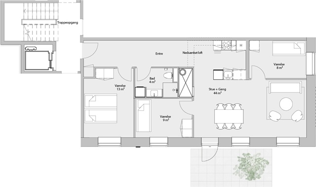 Light and air are the key words for the overall layout. The windows are positioned so that the residents have an optimal view of the attractive green areas and towards the city. The balconies of the properties are positioned so that they do not shade each other, and yet give the residents maximum privacy. The green area between the buildings ties everything together and provides plenty of opportunities for development in a large common area, and Åbyskolen is just around the corner. The well-appointed 4-room apartments have a living room in open connection with the kitchen and dining area, and are also shared, which is a big plus for students. The apartment is wonderfully bright and has a large balcony with a fantastic view of the city skyline and nature. The apartment is of course equipped with its own washing machine and dryer in the bathroom. There is access to a storage room in the basement. *NOTE - pictures are from a similar apartmentIf you want to read the description in its original language that is also possible. Read original description