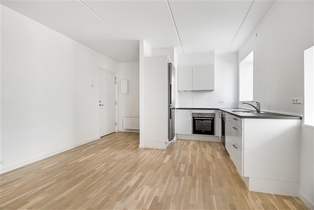 Light and air are the key words for the overall layout. The windows are positioned so that the residents have an optimal view of the attractive green areas and towards the city. The balconies of the properties are positioned so that they do not shade each other, and yet give the residents maximum privacy. The green area between the buildings ties everything together and provides plenty of opportunities for development in a large common area, and Åbyskolen is just around the corner. The well-appointed 4-room apartments have a living room in open connection with the kitchen and dining area, and are also shared, which is a big plus for students. The apartment is wonderfully bright and has a large balcony with a fantastic view of the city skyline and nature. The apartment is of course equipped with its own washing machine and dryer in the bathroom. There is access to a storage room in the basement. *NOTE - pictures are from a similar apartmentIf you want to read the description in its original language that is also possible. Read original description