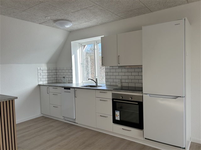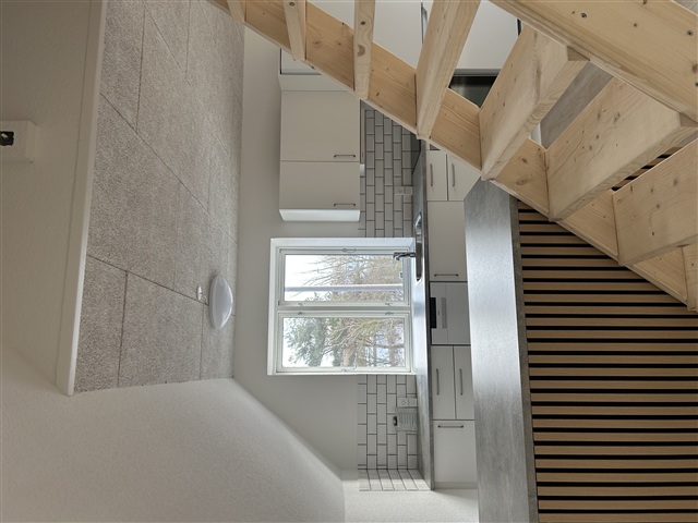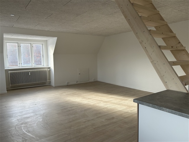 This two-level apartment has undergone a complete renovation. The kitchen features a brand-new Kvik setup, fully equipped with modern appliances including a dishwasher, a combined refrigerator-freezer, a built-in oven, and a ceramic cooktop. The kitchen opens directly into the living area, creating a seamless living space. Adjacent to the kitchen on the left side is the bathroom.From the kitchen and living room area, a staircase leads to the first floor, where two bright and attractive bedrooms are located. Throughout the entire rental unit, new hardwood floors have been installed, enhancing the overall aesthetic.