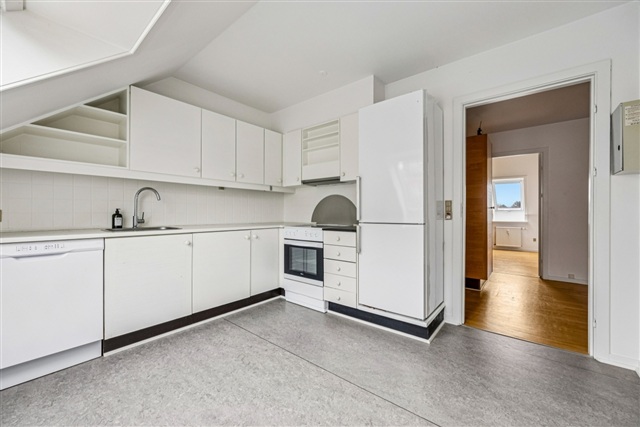 This bright three-room apartment is situated in a well-maintained building right in the heart of Haslev, offering a convenient location close to the train station, shopping options, cafés, and other city amenities. Upon entering, you are greeted by a light-filled hallway that provides access to every room. A separate, practical kitchen features ample cabinet space, while the two standard-sized bedrooms are versatile enough to serve as sleeping quarters, children’s rooms, or home offices. The bathroom is also bright and equipped with a shower.The living room is spacious and welcoming, comfortably accommodating both a seating and dining area. At the rear of the property, residents benefit from readily available parking. The neighborhood combines tranquility with centrality, making this well-laid-out apartment a desirable choice for singles, couples, or small families alike.