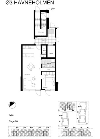 Rental apartments with a modern and open floor planHavneholmen is a modern property located on Aarhus Ø, right next to the water.Inside, Havneholmen offers several different apartment types with 2, 3, 4 or 5 rooms, where you either have access to your own terrace in the living room or a balcony from the 1st floor. All entrances have a lift from the parking basement up to the top floor.The apartments contain a nice living room with a sofa and dining area in open connection with the kitchen, bedrooms with a fixed wall of cupboards, a bathroom with both underfloor heating, a separate shower cubicle and a washing column. The large window sections illuminate the apartment with ample amounts of daylight, which at the same time gives you plenty of opportunity to enjoy the view.The beautiful ash floors are throughout and all elements are from JKE Design in a stylish design.