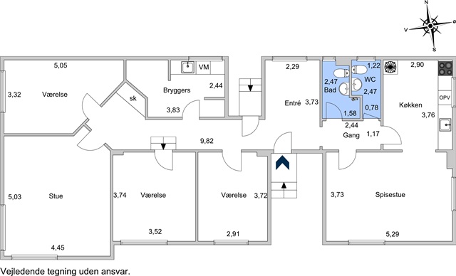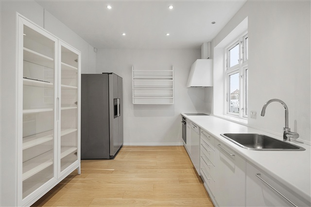 The apartment is attractively located in a corner building on the pedestrian street in Ballerup - within a few minutes' walk of shopping, public transport and much more. The apartment is rented out as an unlimited lease and is ready to move in. You arrive in the entrance hall with space for furniture and outerwear. From here, a hallway provides access to the apartment's four spacious rooms at one end of the apartment. Three of the rooms are currently furnished as bedrooms, while the last corner room is furnished as a living room. On the other side of the hallway is a separate utility room equipped with storage space and laundry facilities. The apartment's kitchen is located at the other end of the apartment and is a good and spacious kitchen with all necessary white goods. There is an open connection to a spacious dining room in extension of the kitchen, where there is room for many dining guests.The bathroom is in a good size and is equipped with a separate shower area. There is also access to a guest toilet. Not available as a shared apartment. Utilities are not included in the rent.