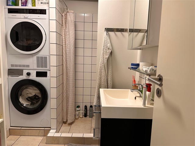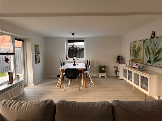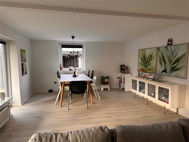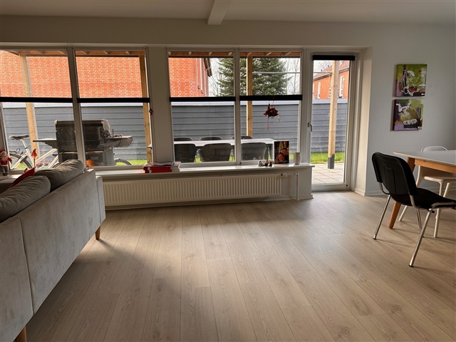 From the apartment there is direct access to a private and sunny terrace – perfect for morning coffee, barbecue dinners or relaxing outdoors. You also get your own parking space right at the door, which makes everyday life extra easy. The garden is landscaped with tiled walkways and grass, and is surrounded by a full-grown hedge, so you can feel completely private when using the garden.