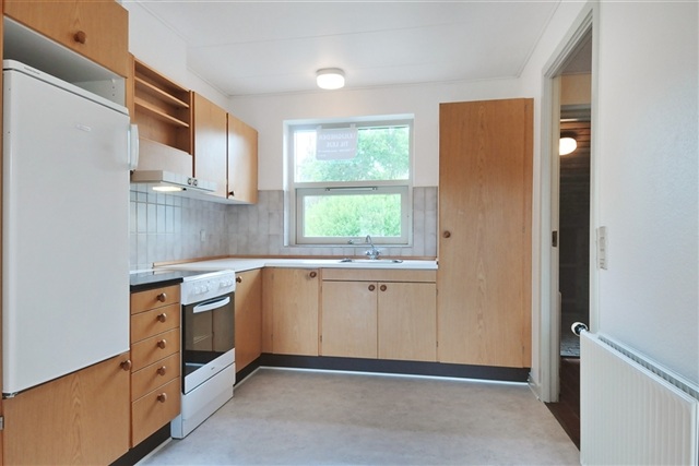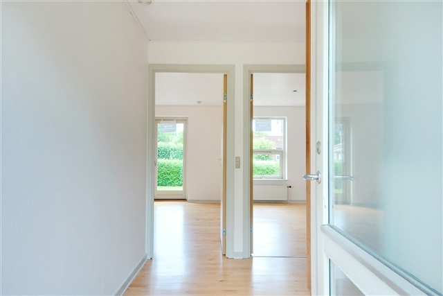 The housing units in Give, Department 1, consist of charming small terraced houses and apartments located in the surrounding area of Give. Among these are four double-row terraced houses containing six family residences offering two or three rooms, along with two single-room youth accommodations. In the family homes, entry is possible either through a small shed providing ample storage or directly via the main entrance into a hallway equipped with a hat shelf and wardrobe rail. The utility room accommodates both a washing machine and a condenser dryer. The bedroom includes built-in closets, while the spacious bathroom features older gray tiles, a shower, and a toilet. The kitchen, finished with oak veneer, is furnished with a stove, extractor hood, and a combined fridge-freezer, and has either linoleum or parquet flooring. It opens directly into the living room, which boasts elegant beech parquet flooring and provides access to a private terrace and garden. The youth units contain a compact kitchen and bathroom but do not have space for a washing machine and/or dryer. The single room serves as a combined living and sleeping area. Located on Løveparkvej, the area benefits from lush greenery and is close to the zoo, school, and public transportation.Regarding utilities, water charges are collected monthly in advance by the landlord, while heating and electricity expenses are billed directly by the utility companies.