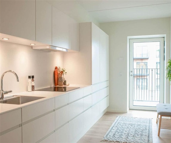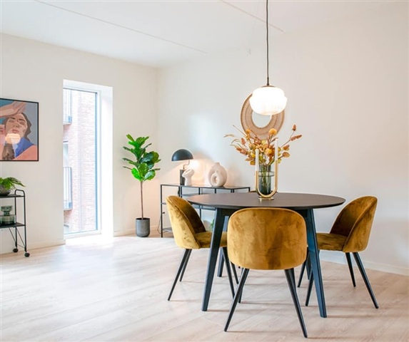 This contemporary two-room apartment, newly constructed with an emphasis on high-quality finishes, showcases carefully selected materials including cabinetry from Svane, offering both comfort and elegance throughout. The generous layout features a cozy bedroom, a stylish living room, and an open-plan kitchen and dining area designed to support both cooking and socializing.A wonderful terrace or balcony provides a pleasant space to unwind while enjoying views of the surrounding neighborhood. Situated centrally in Viborg, the location offers convenient proximity to daily essentials, including shops, dining options, and public transportation. This residence successfully combines modern architectural design with a practical and accessible setting.