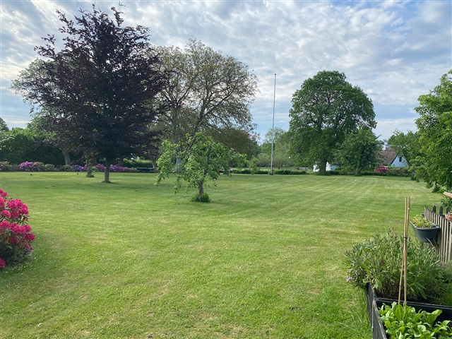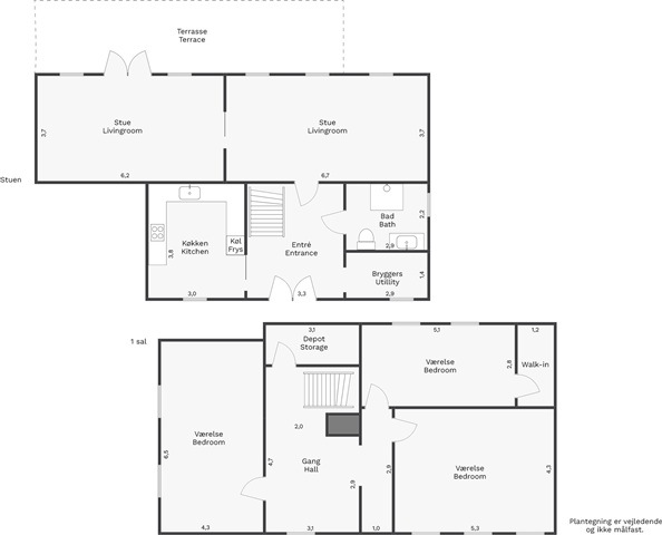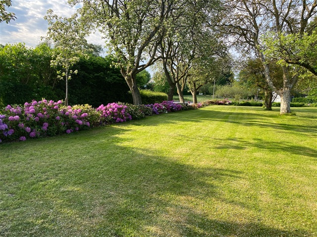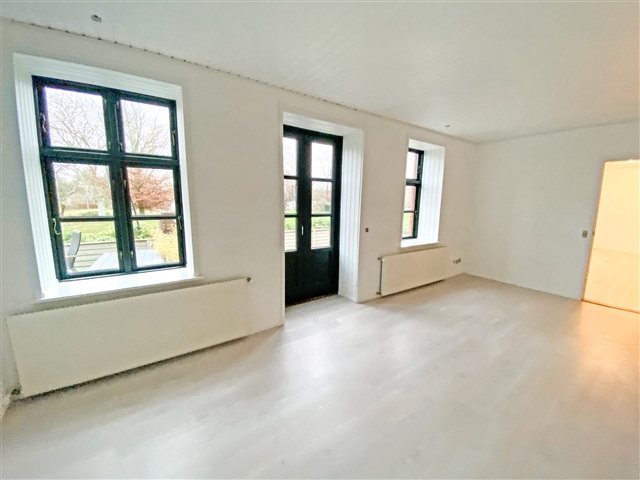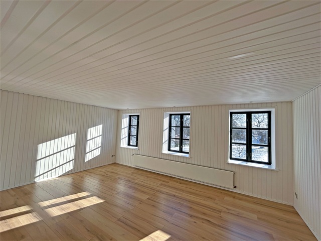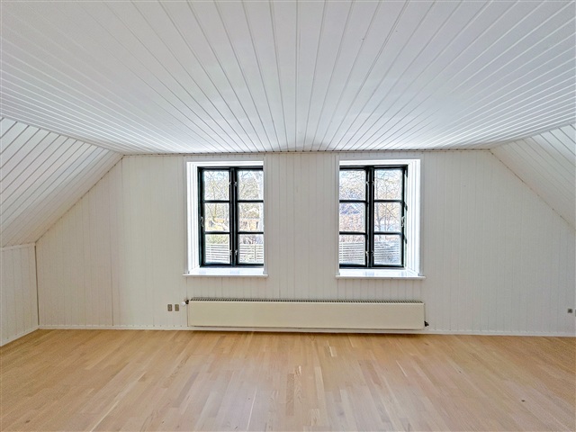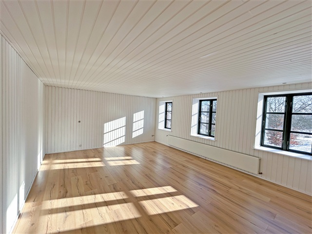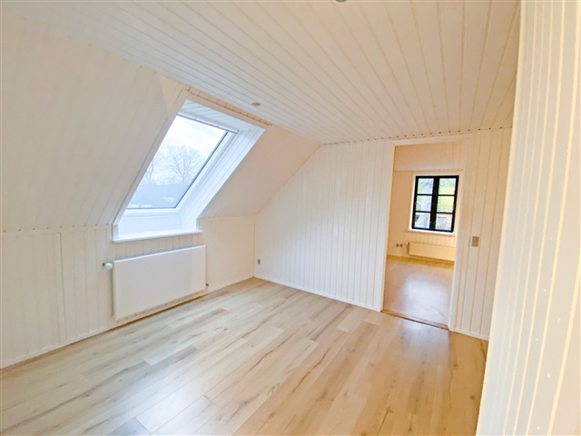 This charming property is situated just on the outskirts of Farum's town center, offering a peaceful setting adjacent to the village pond and a garden reminiscent of a park. Constructed in 1895 using sturdy materials, the residence spans a generous 225 square meters spread across two floors.Inside, you'll find an entrance hall featuring a staircase that leads to the first floor, a utility room equipped with laundry facilities, and a spacious bathroom with a shower. The kitchen is well-appointed, and there are two adjoining living rooms that open onto a large terrace, providing views over the expansive garden. The upper floor includes a large landing, a small storage room, and three sizable bedrooms, one of which includes a walk-in closet.