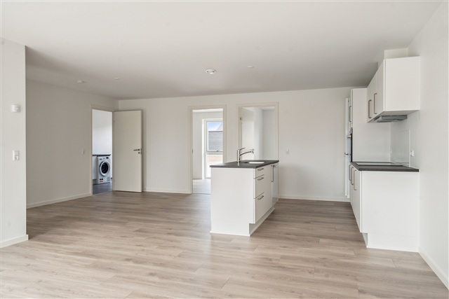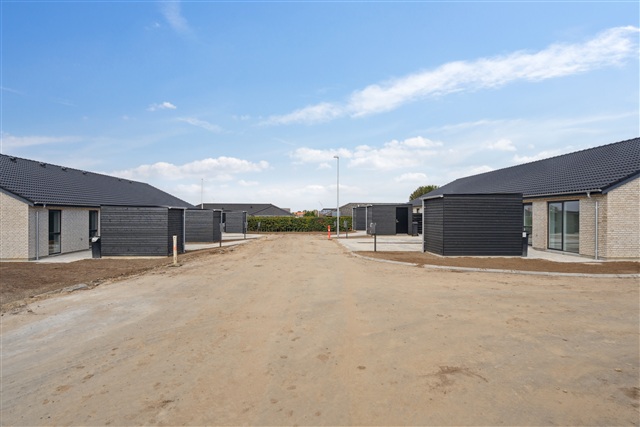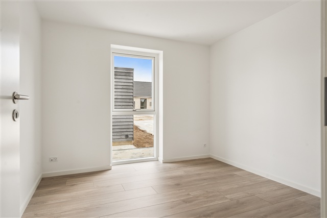 A newly built, energy-efficient townhouse near Fredericia becomes available for possession on March 1, 2025. Completed in the autumn of 2023, the property still maintains a fresh, unused appearance. Prior to handover, all surfaces will have been freshly painted.This home is one of twelve units situated within a peaceful cul-de-sac in the southern section of Egeskov, a sought-after neighborhood surrounded by beautiful natural scenery, shops, and schools. Positioned at the end of the street, the property is an end-row townhouse featuring a green space as its immediate neighbor on one side.