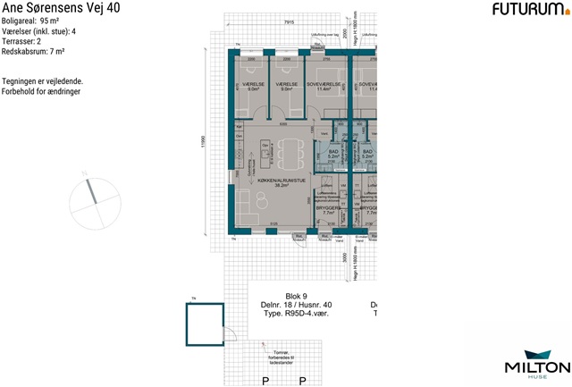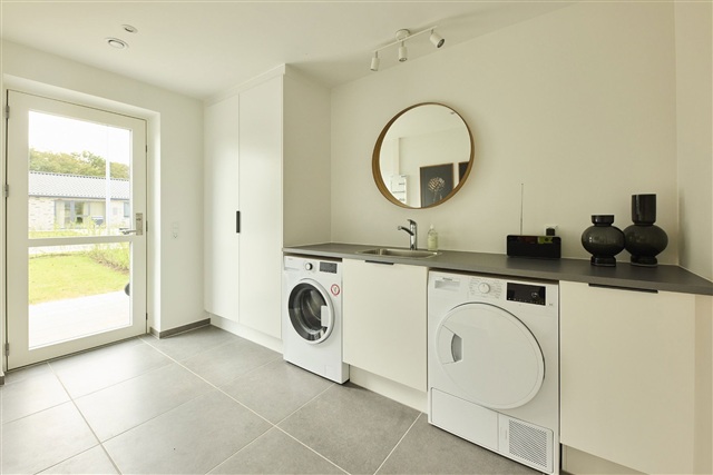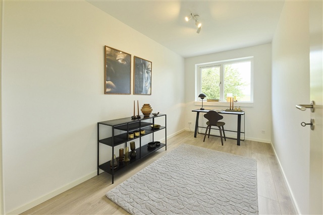Modern townhouse where every square meter is fully utilized. You enter the entrance hall and utility room in one, furnished with a sink, technical cabinet and space for a washing machine and dryer. From the entrance hall you enter the living room with a bright modern kitchen, space for a dining table and the possibility of a cozy sofa corner. From the large family room you can access the modern bathroom. Furthermore, there is a large bedroom with built-in closet wall and access to the large terrace and garden. In addition, there are two good-sized bedrooms and from the family room there is access to a terrace the entire width of the house.Garden: Private garden and terraceOutbuildings: Storage room 7m²Parking: 2 parking spaces by the houseAll consumption is paid directly to the utility companiesOpen and bright semi-detached housesAll semi-detached houses are bright and friendly with white, smooth ceilings and walls. Lovely windows for extra light throughout. Oak plank floors (laminate) in the kitchen/living room, living room and bedrooms. Entrance hall, utility room, bathroom and shower are finished with beautiful tiled floors in dark gray. All doors in smooth, white finish with stainless steel handles and without doorsteps for optimal access. Window frames are bricked and water-scoured in white. Walls facing the floor are finished with smooth white skirting boards.Fine details everywhereKitchen, bathroom, utility room and bedroom are fitted with modern HTH modules in smooth white finish with anthracite line handles. Practical laminate worktops in 'rustic slate' color with spacious steel sinks. Splash plate behind the hob for easy cleaning. Bathroom sink in molded material. Wall-hung toilet from Ifö Sign, quality fittings from German Hans Grohe and line drain in the shower.Quality white goodsAll appliances are included and of recognized quality. The oven is built into a tall cabinet.A washing machine and condenser dryer are also included.Fixed and good lightingThere is a light source in the bathroom and utility room as well as ventilation in the ceiling. The kitchen has spotlights in the wall cabinets.Prepared for electric carsEmpty pipes have been prepared for an electric vehicle charging station.Healthy indoor climate and underfloor heatingThere is underfloor heating throughout the semi-detached house. This is controlled via separate thermostats in all rooms. The home is equipped with ventilation systems that ensure a healthy indoor climate.Individual consumption metersConsumption for electricity, heating, water and wastewater is settled directly between the tenant and the utility companies. Heating is via district heating.Outside, there is an electrical outlet and faucet as well as a wall lamp by the entrance door.Reservations are made for corrections.