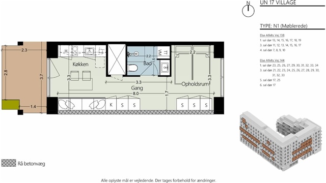 Upon entering this residence, you step into a spacious kitchen equipped with all necessary appliances and built-in cabinetry for ample storage. To the right of the kitchen lies the bathroom, which is both bright and generous in size, featuring a shower area as well as a combined washer and dryer unit. This home is designed with high-quality materials throughout, including wooden flooring, Rotpunkt kitchens, underfloor heating, and an urban, contemporary aesthetic.The Norden building comprises 193 high-standard studios and offers a variety of amenities. Residents have access to rooftop terraces, communal work and study spaces, bike parking, comfortable lounge areas for relaxation and socializing, and a well-appointed shared kitchen. These features provide numerous opportunities to connect with neighbors or spend time with friends and family. The property itself was designed by architects from Sweco; it is part of UN17 Village, the world's first development to integrate the UN's 17 Sustainable Development Goals into a comprehensive solution. Positioned adjacent to Kalvebod Fælled, this location offers residents both natural surroundings and city conveniences within easy reach.