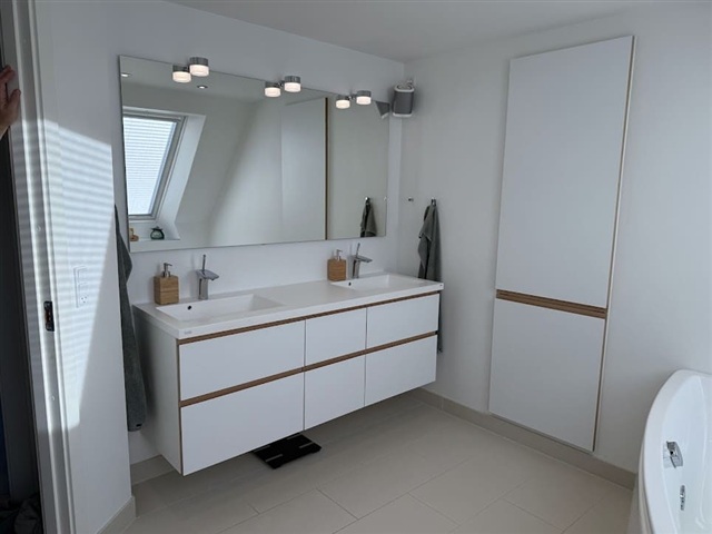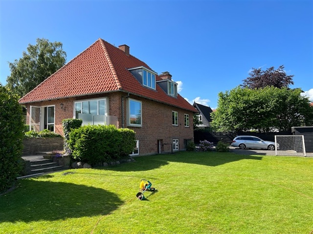 This villa is situated at the end of a quiet, private cul-de-sac in the East City area of Horsens, offering a pleasant view of the fjord. It is conveniently located just a 10-minute walk from both the harbor and the city center.The property encompasses 194 square meters and features a modern kitchen, several spacious bedrooms, and three interconnected living rooms. Additionally, there is an attractive wall-mounted wood-burning stove. From the living room, you can step out onto a south-facing terrace that includes a covered section.