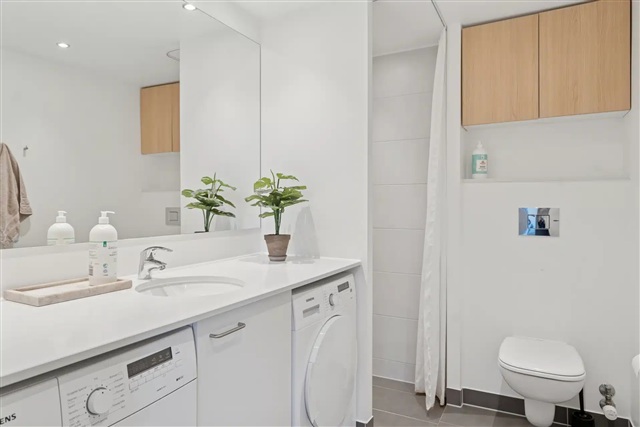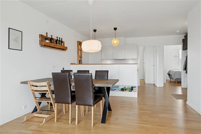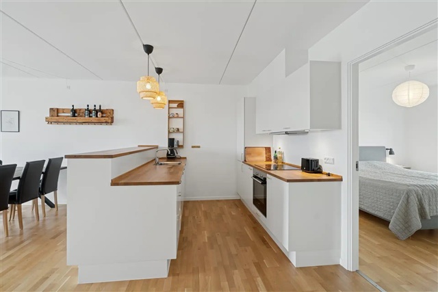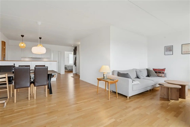 This lovely apartment features an open-plan kitchen seamlessly connected to a living room that leads out onto a spacious balcony, offering spectacular views over the rooftops of Copenhagen. In addition, the residence includes two well-sized bedrooms and an exceptionally spacious bathroom. Private parking can be rented in a secured underground garage at a monthly cost of 1,500 DKK.Situated on Margretheholmsvej, the property is located in a contemporary and sought-after neighborhood on Refshaleøen in Copenhagen, where waterfront living, modern architecture, and a calm urban atmosphere come together. The area is distinguished by its unique combination of a new urban district and maritime surroundings, including canals, green pathways, and views over the harbor.