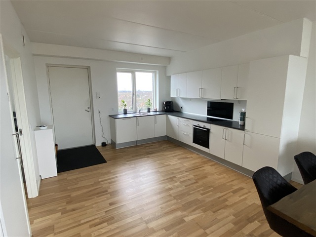 This charming apartment is situated in Odense with a convenient location just a 10-minute drive from the city center. The residence benefits from an abundance of natural light throughout the day. A shared terrace is available for residents to enjoy sunny weather during the summer months. The kitchen is designed as an open-plan extension of the living room, creating a modern and cohesive living space. The apartment features a spacious bedroom that offers ample room. It comes fully equipped with all essential appliances, including a dishwasher, washing machine, and tumble dryer. There is also an option for a deposit-free arrangement.Within close proximity, residents will find access to fitness facilities, dining options, and the light rail. Additionally, a Netto supermarket is conveniently located on the ground floor, making daily shopping errands straightforward. Students will appreciate the short distance to SDU, and the pedestrian shopping street is also within easy reach.