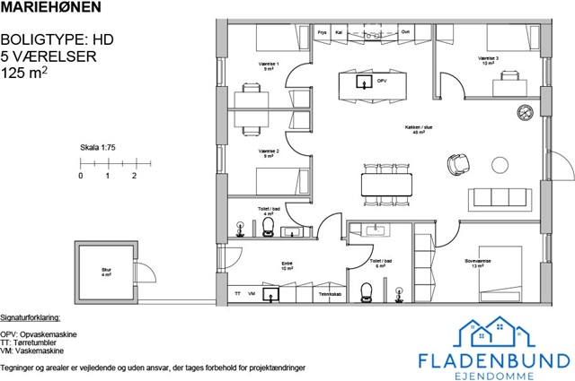 Mariehønen, 125 m2, 5 rooms, 12,895 kr.