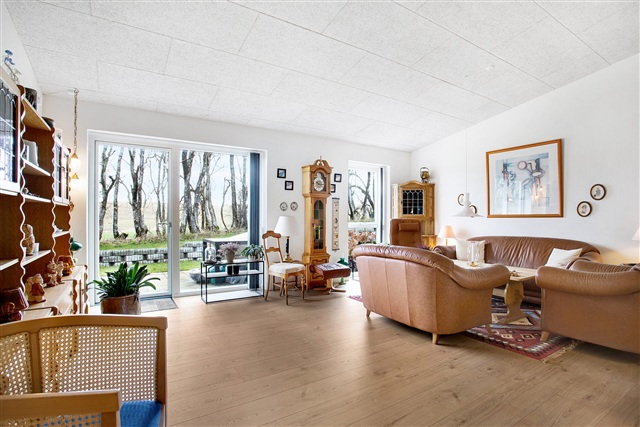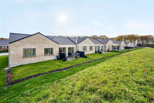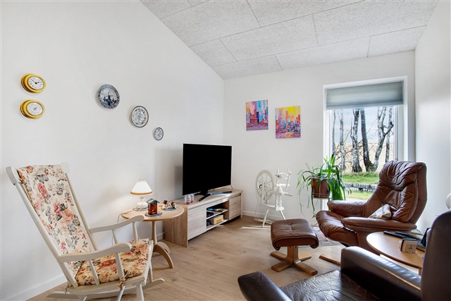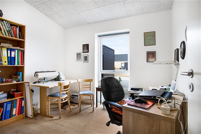 The residence features a spacious kitchen-dining area with a vaulted ceiling. This bright and inviting kitchen opens directly onto the front garden and flows seamlessly into the dining and living rooms. There is ample room for a long dining table as well as a cozy seating area.This terraced house offers a large bedroom equipped with built-in HTH wardrobes and enough space for a desk. From this bedroom, you have direct access to a tiled terrace. The second bedroom also contains fixed wardrobes and provides enough room for a single bed and a desk.