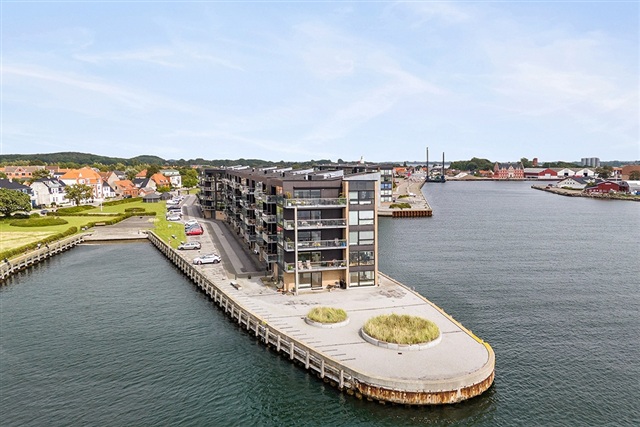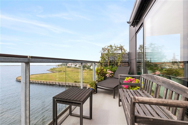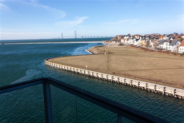 Situated at arguably the most coveted address in Korsør, this exceptional apartment occupies the topmost and corner position of the building. The residence offers an entirely private and breathtaking 180-degree panoramic vista over the Great Belt, featuring unobstructed views of the water and the elegant Great Belt Bridge-a continuously changing scene that reflects the seasons and infuses the home with a distinctive ambiance.This apartment stands out as truly extraordinary, catering to discerning tenants who prioritize spaciousness, comfort, and an unparalleled location. With three balconies available, it's possible to enjoy sunlight throughout the day and take in the scenery from multiple perspectives-whether savoring morning coffee, dining al fresco at lunchtime, or witnessing the sunset over the strait during the evening.