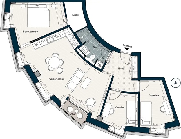 An opportunity has arisen to become the inaugural tenant in one of the distinctive round towers within Postbyen. These towers have quickly established themselves as iconic landmarks in the heart of Copenhagen, and now you have the chance to reside in one of them. Availability for move-in begins in February 2026, offering residences that range from two to seven rooms, each featuring balconies that overlook the vibrant cityscape below.Living in Postbyen means settling into a freshly developed and dynamic urban neighborhood, complete with hotels, shops, restaurants, cafés, and much more. Your new home is nestled amidst striking architecture, while immediately outside your door lies a lush city park that weaves green vitality through the area. Whether you choose a two-room or seven-room apartment, you will inhabit a residence that breaks away from conventional layouts. The circular form of these towers creates unique angles, cuts, and corners, delivering a living experience shaped by walls, floors, and ceilings that eschew typical right angles.