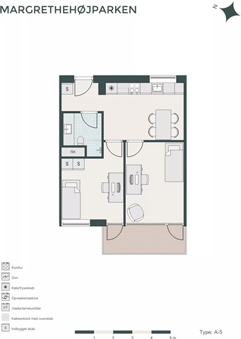 Located just 7 kilometers from Aarhus city center, Margrethehøjparken offers this charming three-room apartment. The layout has been carefully planned to maximize every square meter, making it an ideal choice for those seeking a stylish home close to all amenities.Inside, you will find an entrance area ample enough for coats and shoes, a modern bathroom equipped with underfloor heating, generous cabinet space, and a combined washer-dryer unit. The apartment also features a spacious kitchen-living area and two well-sized bedrooms, both providing access to a balcony. Designed with quality materials throughout, the home benefits from abundant natural light and ample storage options. All major appliances are included upon move-in.