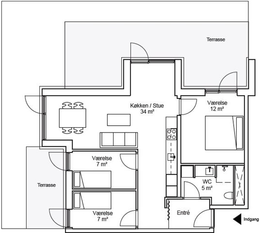 This bright and attractive four-room apartment is situated in a modern building constructed in 2019 and is available for rent. It features two pleasant terraces, one of which is notably spacious, with access from every room as well as the open living and dining area.The property is located on Stenpassagen, close to Østboulevarden, and enjoys proximity to both forested areas and the beach. It is also conveniently near Aarhus Ø, an area offering a variety of appealing amenities such as a marina lifestyle, the Harbour Bath, and Bassin 7, which includes a café scene and more.
