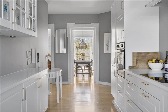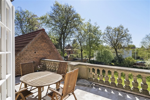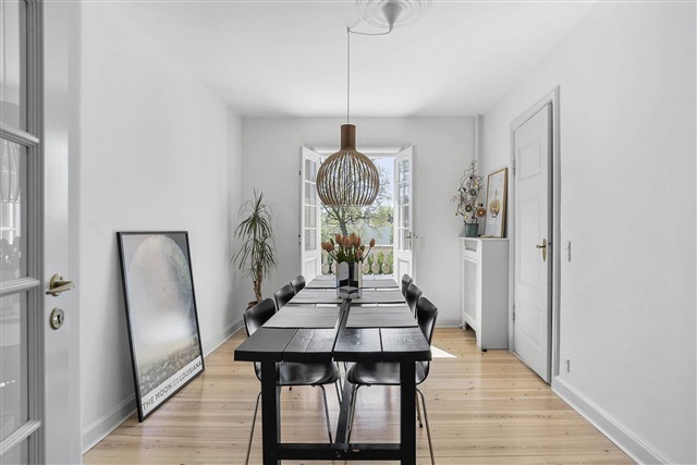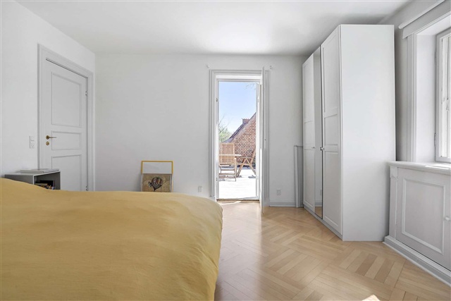 Situated on the first floor of a charming villa centrally located in Hellerup near Henningsens Allé, this beautifully renovated apartment offers a bright and spacious living environment. The unit features a private entrance, leading upstairs to an open kitchen equipped with high-quality finishes and thoughtful details. Adjacent to the kitchen is a large utility room with additional storage space and a separate toilet. Double doors open into the dining area, which grants access to an expansive, sun-drenched terrace overlooking the garden.The apartment includes two generously sized, interconnected living rooms, along with three sizable bedrooms, one of which also opens onto the terrace. The bathroom is bright and appointed with elegant tiles and carefully selected materials. The garden, shared with the resident below, is freely accessible. The rental comes with two parking spaces and a cellar storage room. Pets may be permitted upon inquiry.