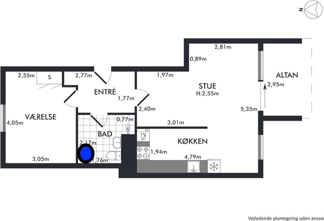 Rent: DKK 10,800/month including water and heating.I am subletting my lovely, spacious, and bright 2-room apartment in Roskilde, from February 1st, 2026, as I will be working temporarily in another part of the country.