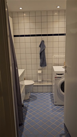 • Large, tiled bathroom with floor heating, shower and ample storage space