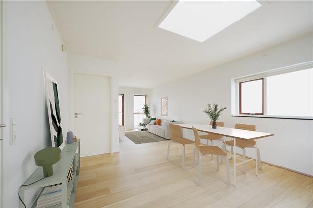 Additional amenities provided by the building include permission to keep pets, a private storage room, district heating, green communal areas, easy connections to Aarhus C by bus or Light Rail, and complimentary parking.