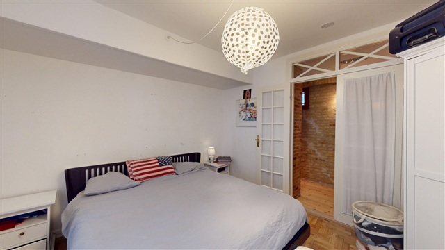 The apartment includes two sizable, well-proportioned bedrooms, each offering enough space for beds, wardrobes, and the option of a home office. Quietly located within the layout, these rooms can function flexibly as sleeping quarters, children's rooms, or workspaces, depending on one's needs. At the far end of the apartment lies a spacious and practical bathroom, thoughtfully arranged with a functional layout and generous space. Nearby is the cozy kitchen, which provides excellent work surfaces, good storage, and room for a small dining area. The kitchen exudes a warm and inviting atmosphere, perfect for both daily meal preparation and intimate moments.