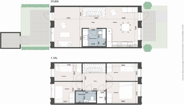 This residence encompasses 112 square meters and includes four well-sized bedrooms. On the ground floor, you'll find a bright, open kitchen seamlessly connected to the living room. The kitchen offers views through the windows onto your private front garden as well as the neighborhood's charming green communal spaces. From the living room, there is direct access to the terrace and your own small garden plot, along with a shed for storing bicycles and other items. This particular housing type features two spacious bathrooms, one located on each floor. Upstairs, all four bedrooms are thoughtfully arranged with large windows that bring in ample natural light.At Kernehusene Slagelse, living here provides more than just your private home. The community includes a shared house equipped with a kitchen and dining areas, a guest room for visitors, and an orangery where residents can gather and enjoy the warmth of a wood-burning stove. Outside, children can safely play among the houses without car traffic, make use of the playground adjacent to the communal house, or run around on the neighborhood's sports field.