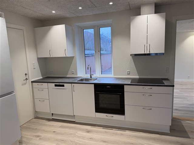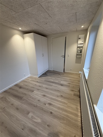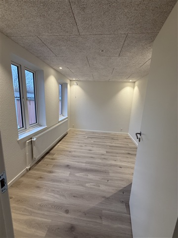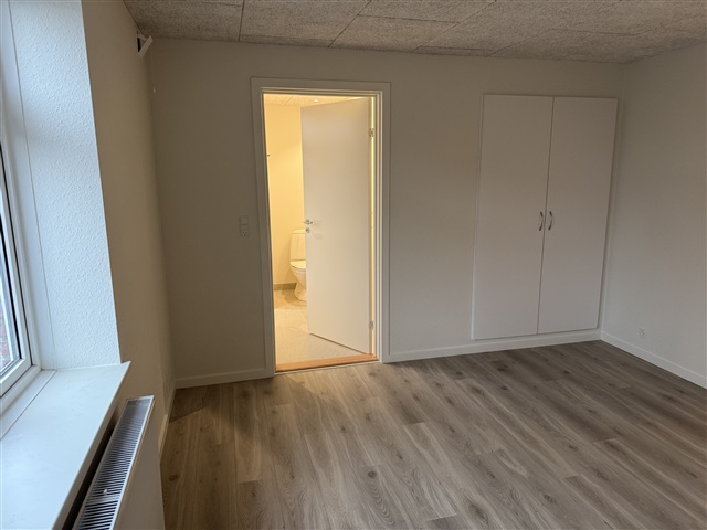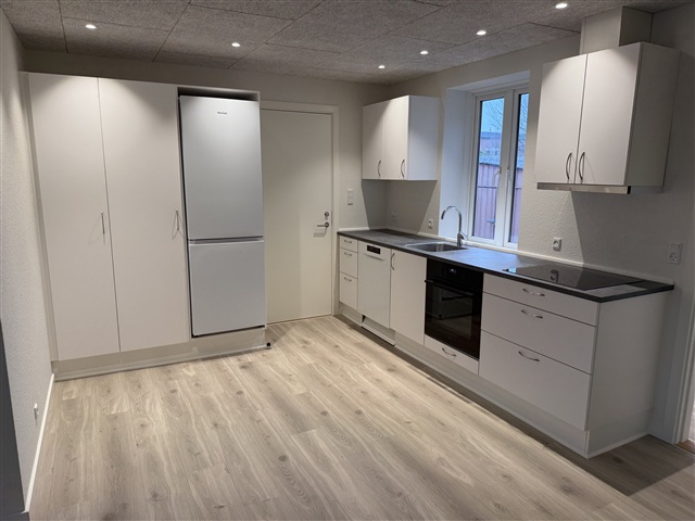 Welcome to a bright and modern ground floor apartment, which has just been completely renovated and is ready to move into. The home is centrally located in Ringkøbing, yet undisturbed with access to a beautiful shared garden.The apartment contains a large and bright living room in open connection with the new kitchen, which is equipped with a dishwasher, integrated oven, large fridge/freezer and plenty of good cupboard space. The entire kitchen and living room have spotlights and beautiful high-pressure laminate floors in a natural wood look.