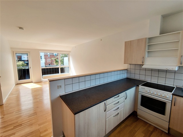 This charming apartment offers the possibility of having pets, subject to agreement, and is conveniently situated close to shopping facilities. Within a short walking distance lies the pedestrian street, while the apartment itself enjoys a very private location. Upon entering, you find a spacious hallway that leads into the kitchen, which is openly connected to the living room. The generous living area provides direct access to a south-facing balcony with plenty of space.From the living room, you proceed to the large bedroom, featuring an integrated wall of closets. The residence feels bright and welcoming, largely due to the expansive windows present throughout. The bathroom offers ample room, including suitable provisions for installing both a washing machine and a dryer. For those interested, viewings are available every day of the week.