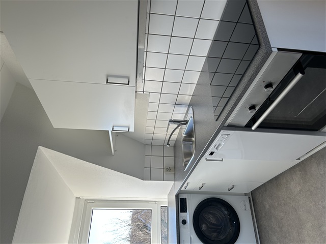 This recently renovated and modernized two-room apartment features an entrance hall and a white Kvik kitchen equipped with a full range of appliances, including a refrigerator-freezer, built-in oven, and ceramic cooktop. The living room is spacious and bright, complemented by a well-lit bedroom along with a bathroom and toilet.The flooring consists of sanded and lacquered wooden boards throughout the unit. A combined washer and dryer is included within the apartment for convenience.