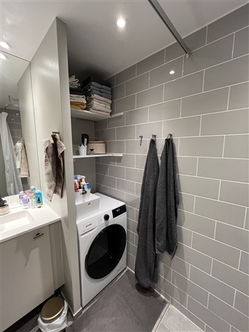 The apartment is divided in a kitchen and a bedroom area, separated by a hallway that I use as a dressing area. The bathroom is reached via that hallway, located in the middle of those 'two rooms'. Moreover, there are common areas that can be used, such as TV-rooms, a working area, a rooftop terrace, gardens, a common kitchen and the lobby.I rent the apartment fully furnished, including double bed, wardrobe, washing machine, dining table, chairs and a fully equipped kitchen. It is suitable for 2 persons.