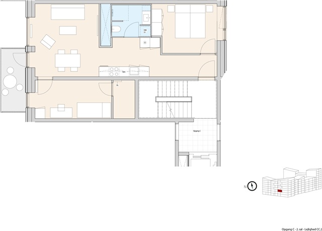 This property features a three-room apartment located in Ørestad Have, a development that harmoniously combines urban living with natural surroundings. Each apartment includes a modern, open kitchen outfitted with appliances such as a dishwasher. The bathroom is equipped with both a washing machine and a tumble dryer. The layout optimizes space effectively, offering generous room for living areas as well as bedrooms, making these apartments especially suitable for couples or small families.The building itself offers an elevator for convenience, designated bicycle parking, and shared green spaces for residents to enjoy. Parking spaces are available for rent, contributing to a comfortable and practical everyday living experience.
