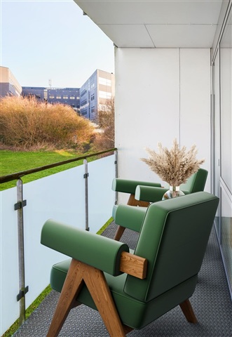 The building itself provides several conveniences: residents may keep pets, enjoy communal green areas, benefit from district heating, access an elevator, secure bicycles in a covered parking area, and use a large shared rooftop terrace with views. Public transport is extremely accessible with the light rail stop right outside, and parking is free for residents.