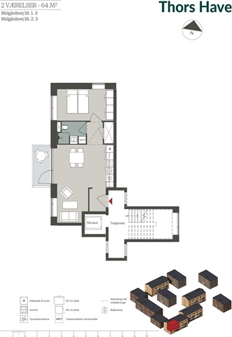 Nestled amidst forest and beautiful natural surroundings lies Thors Have, a new urban district in Odense. This neighborhood offers cozy courtyard spaces along with expansive green recreational areas that encourage walking, jogging, or cycling while enjoying the scenic outdoors. Its location is conveniently central, providing easy access to various amenities.Within a short walk, residents find daily necessities at nearby grocery stores, a wide range of shopping options at Tarup Center, and are only minutes away from the Light Rail, all of which become integral parts of life in Thors Have. The housing options span from well-designed two-bedroom apartments measuring 53 square meters to spacious four-room apartments up to 99 square meters, each featuring generously sized balconies or terraces.