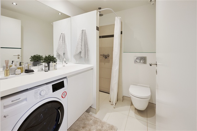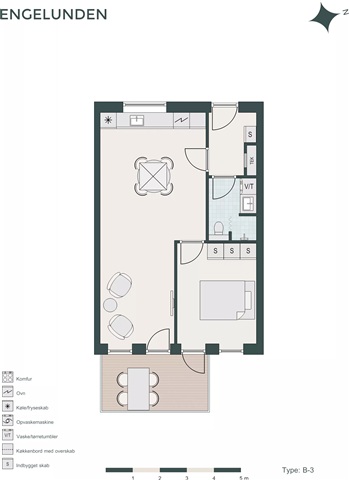 Located in Viby J, merely 6 kilometers from Aarhus city center, this charming two-room apartment offers a well-designed living space featuring an entrance hall equipped with ample storage for coats and shoes. The open-plan kitchen and living area benefit from abundant natural light and come fully equipped with modern appliances, including a convection oven, a ceramic stovetop with fingertip controls, a range hood, a combined fridge and freezer, as well as a fully integrated dishwasher. The spacious bathroom is fitted with light-colored tiles, extensive cabinet space, a wall-hung toilet, and a combined washer and dryer unit. The large bedroom also includes built-in wardrobes for additional storage. Both the kitchen and the bedroom provide access to a generously sized balcony.Residents will appreciate convenient transportation options, with Engelunden providing excellent bus connections to the city center and close proximity to the light rail, which offers a quick journey to Aarhus C within minutes.