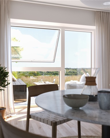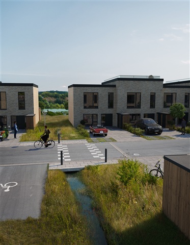 Located just a 30-minute drive north of Copenhagen, Natursøhusene offers newly built two-story terraced houses. This development provides a unique blend of contemporary construction and natural surroundings, featuring lakes, hills, and verdant trails right outside your door, while still allowing for a quick commute to the city.The home spans two floors and includes a spacious, bright kitchen-dining area that flows openly into the living room. On the ground floor, there is a guest toilet equipped with storage space, as well as connections for a washing machine and dryer. From here, you can step out onto a large, sheltered terrace. Upstairs, two airy bedrooms await, one of which features access to a sizable and attractive balcony. The upper level also houses a large, modern bathroom.