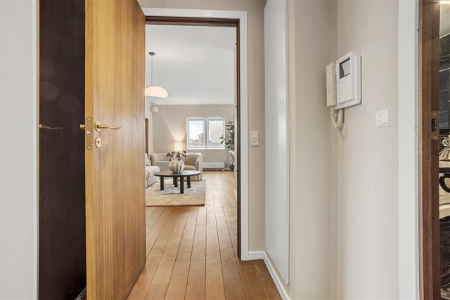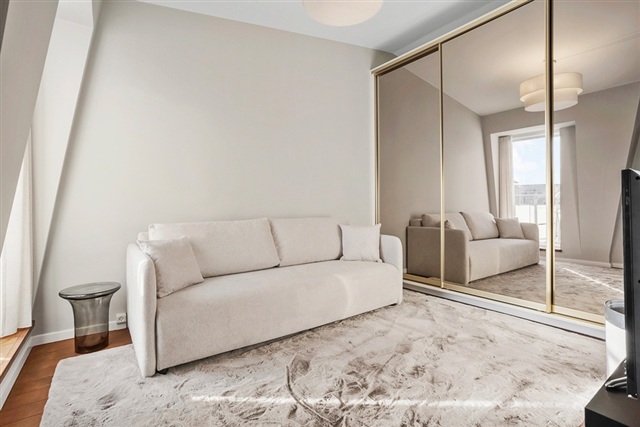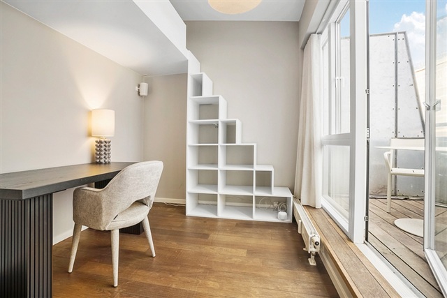 The apartment accommodates a master bedroom furnished with a double bed and built-in wardrobes, an additional bedroom equipped with a sofa bed and also fitted with built-in storage, as well as a separate room arranged as a home office. From the living area, access is granted to a charming corner balcony overlooking the courtyard, providing a tranquil outdoor retreat right in the heart of the city. This residence is a rare offering designed for quality-conscious tenants seeking luxury, comfort, and a prime Copenhagen City location. Utility expenses are not included in the rent. Parking spaces are available to rent at 2,000 DKK per month. The apartment is not subject to any residence obligations.