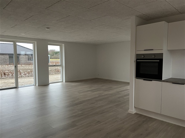The home is equipped with pre-installed conduit for an electric vehicle charging station at the carport. Floor heating extends throughout the entire dwelling and is controlled via individual thermostats in each room. A ventilation system is integrated to maintain a healthy indoor climate.
