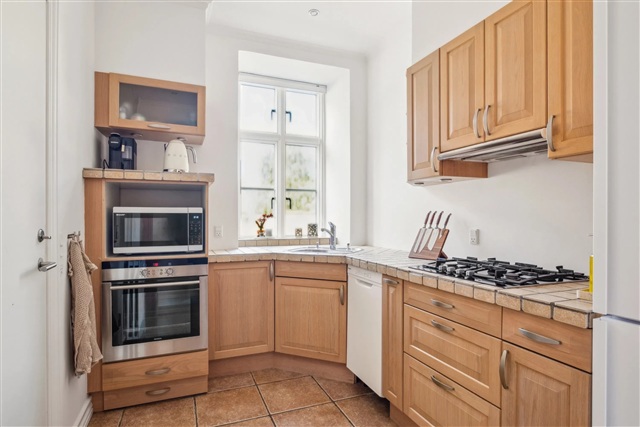 Location-wise, the Ø-gade neighborhood stands out with its charming atmosphere filled with quaint townhouses and cobblestone streets. Situated on Sjællandsgade, the flat enjoys a peaceful setting while still being only minutes on foot from the heart of the city. Nearby, you will find the university, university park, and green spaces ideal for leisurely walks in scenic environments. This apartment perfectly suits individuals or couples who desire proximity to urban amenities combined with beautiful surroundings, yet prefer to avoid the hustle and noise typically found in the city center.