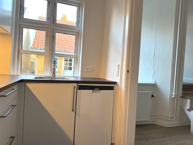 This apartment enjoys a tranquil location in the heart of Odense Centrum, situated within a peaceful neighborhood. A short walk takes you to the pedestrian street as well as to the nearby green spaces such as Munke Mose and the Å-stien trail. Grocery stores and public transportation options are conveniently close by, making daily errands and commuting straightforward.Inside, the rental features a charming bathroom and a bright, modern kitchen installed by HTH, complete with a dishwasher. The residence offers contemporary amenities combined with a central spot that simplifies and enriches everyday living.