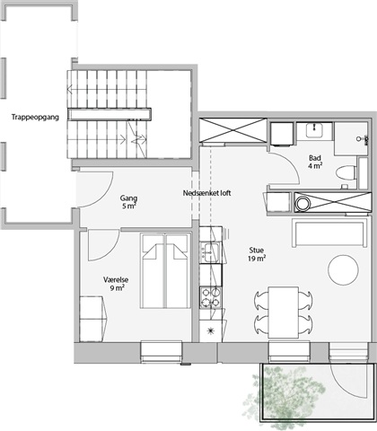 The overall layout is designed to maximize light and openness. Windows are strategically positioned to offer residents excellent views of the appealing green surroundings as well as the cityscape. Balconies on the buildings are arranged in such a way that they avoid casting shadows on one another, while simultaneously ensuring a high degree of privacy for each occupant. The green space nestled between the buildings creates a cohesive environment, providing ample room for various outdoor activities within a large communal area. Additionally, Åbyskolen is conveniently located just around the corner.These well-designed two-room apartments feature a living area that flows seamlessly into the kitchen and dining space. They are bright and airy, complemented by a pleasant balcony that boasts impressive views encompassing both the city skyline and natural scenery. Residents also benefit from access to storage rooms in the basement.
