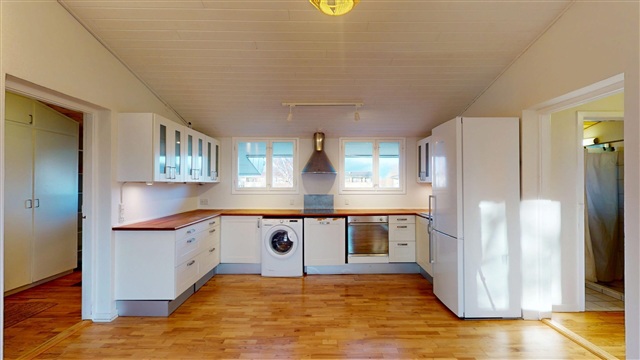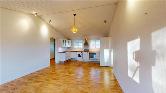 Situated at a particularly quiet spot at the end of the building, this appealing three-room apartment on Teglgårdsvej in Humlebæk offers an excellent living environment. Positioned away from through traffic, the residence benefits from a peaceful and undisturbed setting, providing a private and comfortable atmosphere.Upon entering, you are welcomed by a spacious entrance hall that offers ample room for outerwear and storage needs. This area makes a striking first impression and naturally leads to the remaining rooms of the apartment. Moving forward, you arrive at the bright and inviting kitchen-dining area, which serves as the home's central living space. The open-plan layout is generous enough to accommodate both a dining section and a sitting area, while the large windows allow for abundant natural light to fill the room. From here, direct access to the balcony lets you enjoy your morning coffee or evening sun in tranquil surroundings.