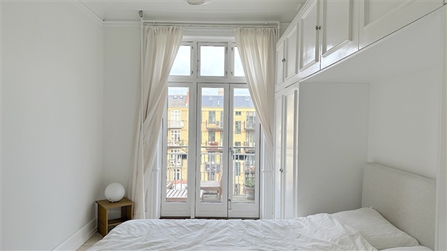 Situated on the fourth floor of a well-maintained building, this residence features an entrance hall leading to two spacious and bright living rooms that offer views overlooking Frederiksberg Garden. The large, inviting bedroom includes built-in wardrobes and provides access to a charming balcony facing the courtyard. The property also includes a neat bathroom equipped with a shower cabin and a washing machine, as well as a bright, generously sized kitchen. Residents have shared access to the courtyard and bicycle parking facilities. The building is conveniently located near several Metro stations, Frederiksberg Center, Frederiksberg Garden, and a variety of shops, alongside numerous cozy cafes and restaurants.