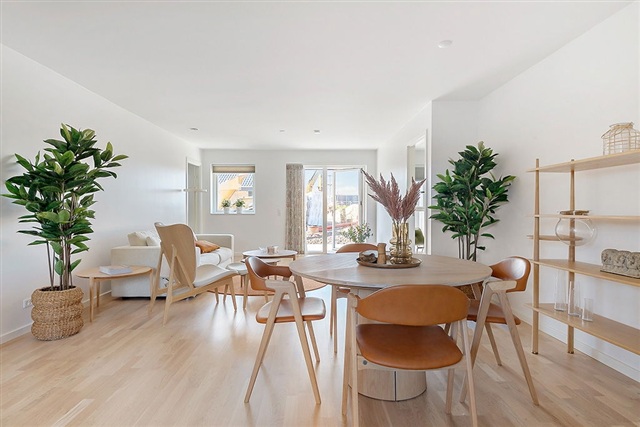 This 90 m² townhouse with three rooms is now available. Upon entering, you will find a spacious utility room offering storage cabinets, space for a washing machine and dryer, as well as a technical area. From here, you can access a generously sized bathroom featuring elegant gray tiles and a large shower enclosure. The utility room and entrance lead directly into an open-plan kitchen and living area. The kitchen, equipped by HTH, comes complete with appliances from a well-known brand. The living room is ample and bright, providing direct access to a private terrace and a garden oriented to the south-west, enjoying sunlight throughout the day. Additionally, a storage room is situated here. Both bedrooms, which are well-proportioned, can be reached from the kitchen-living room area. The property includes its own parking space, guest parking facilities, and four shared Clever charging stations for electric vehicles.