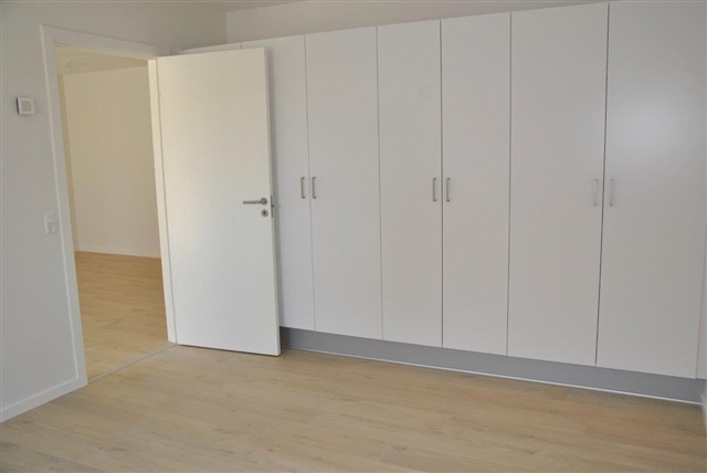 This three-room apartment is located in a modern building situated centrally in Fjerritslev. The residence features an entrance hall, a bathroom equipped with tiled flooring, a shower, and a washing machine. The living room and kitchen share an open-plan layout. The kitchen, manufactured by HTH, includes appliances such as a refrigerator/freezer, oven, stovetop, extractor fan, and dishwasher. Within the apartment, there is one bedroom fitted with built-in wardrobes and an additional room. The unit benefits from a Genvex ventilation system, a small storage room assigned to the rental, and available parking options nearby.